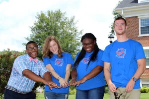 Photographed with Holmes is 2018 Ferrum College alums Seleste Cowie, Sarah Shuford and Max Baker, all former members of his RA staff.